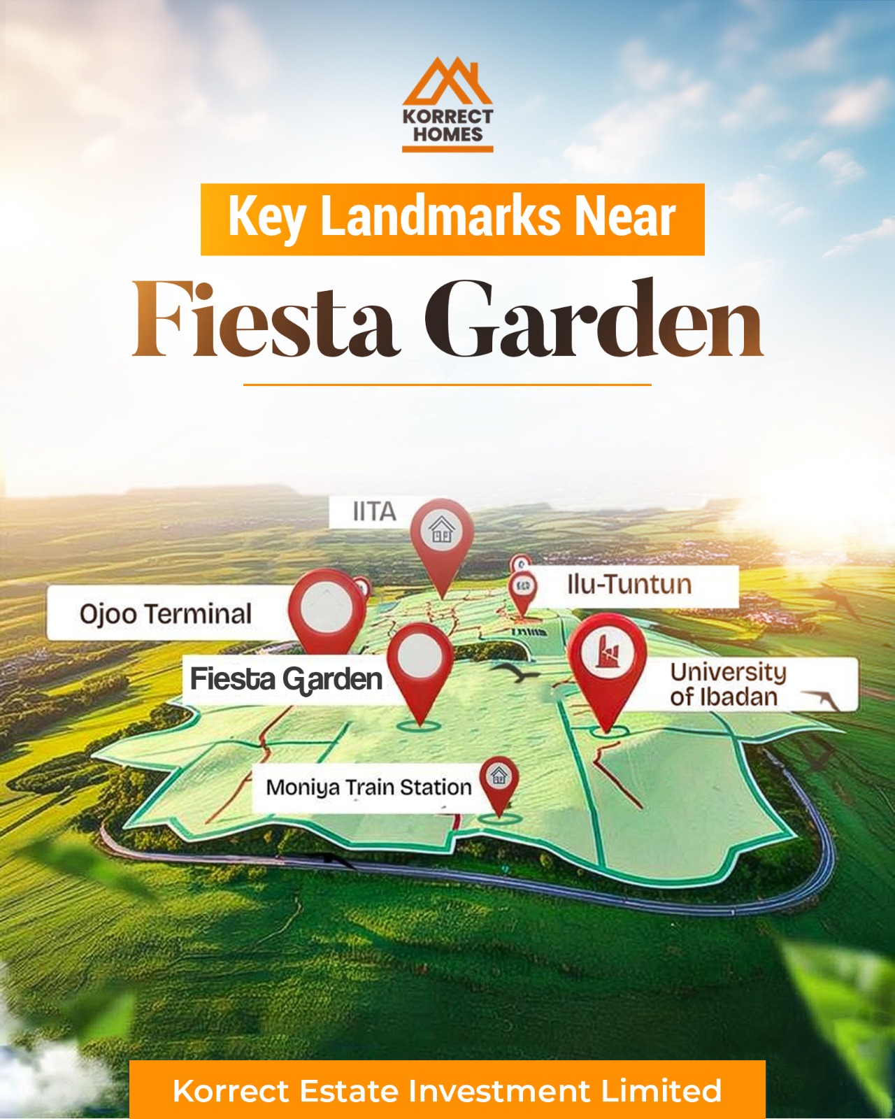 Strategically located at the heart of Ibadan’s new urban revolution, Fiesta Gardens Phase 1 is surrounded by some of the most ambitious infrastructural and economic projects in Oyo State:
