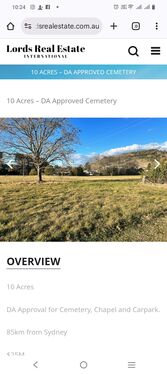 10 Acres – DA Approved Cemetery