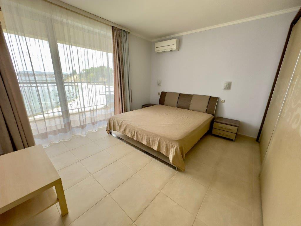 We are pleased to offer this spacious and beautifully furnished apartment located on the first line to the sea, in the exclusive Akrotiria Beach complex in Nessebar. The property provides an exceptional front panoramic view of the sea, offering a rare combination of comfort, space and prime beachfront location.