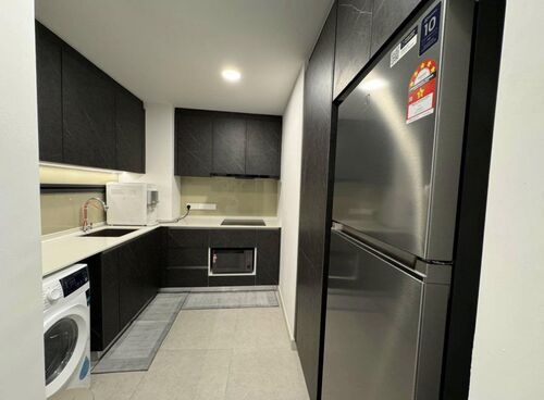 Enjoy a move-in ready home equipped with modern furnishings such as air conditioning, TV, sofa, dining set, kitchen cabinet with hood & hob, refrigerator, washing machine, and more.