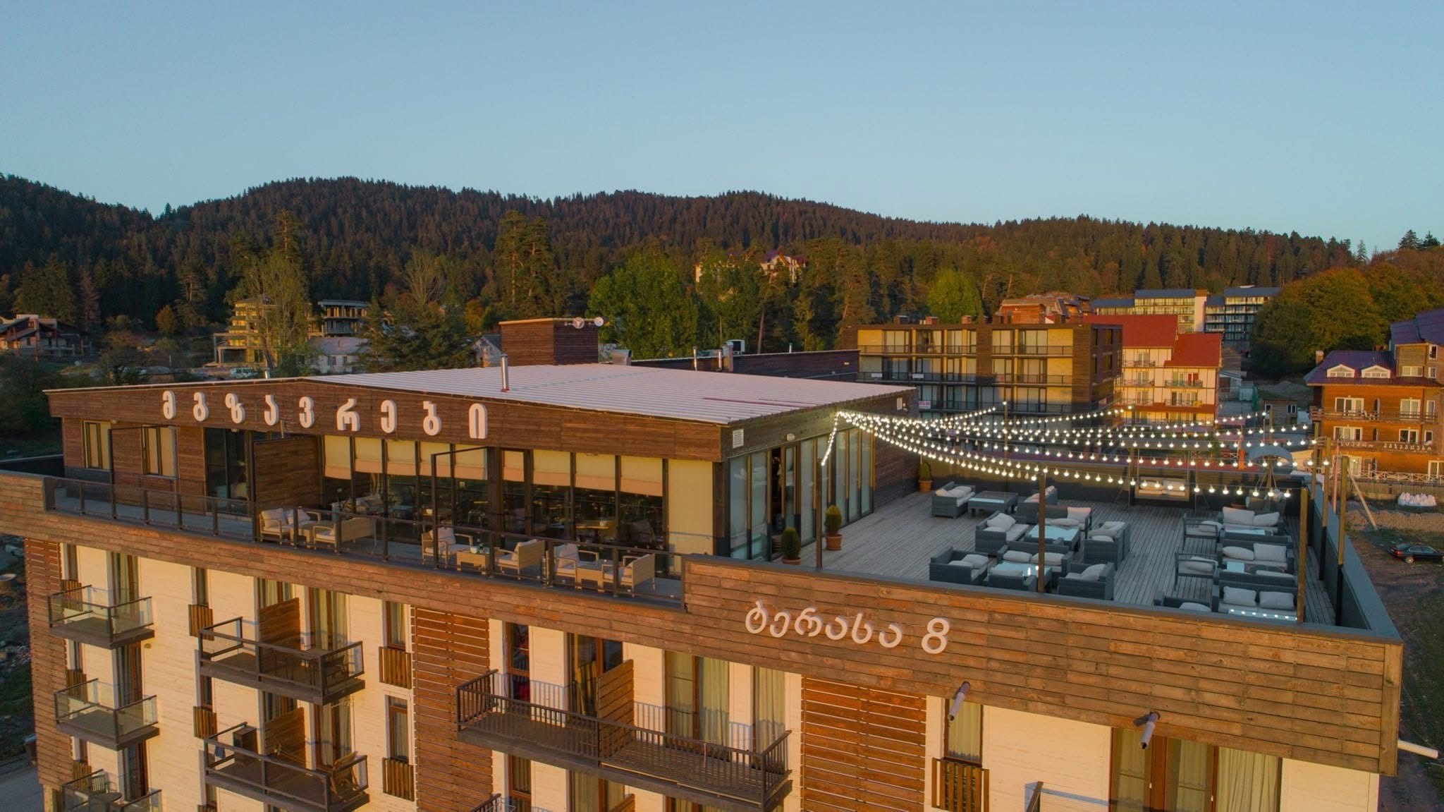 Location: in the area of the so-called Tsriuli, near the ,,Kokhta” turnoff, 400 meters to the ,,25 meters” ski track and 600 meters to the ,,Kokhta” ski track, the best location and the best views in the whole of Bakuriani. Parks, attractions and other entertainment services will be built on the surrounding territory in the Bakuriani development plan in the near future (on the ring road).