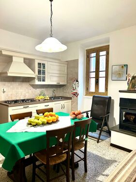 2 storey house separated in two self contained apartments in historic centre of small rural village. Partially renovated. 5 bedrooms. Heating. Garage. Fully furnished.