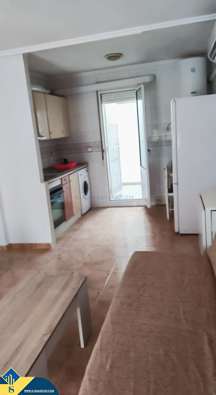 3-room semi-detached house, partly renovated, in the province of Alicante, Spain, in the town of Torrevieja, in the district of Torreta, 3.2 kilometres from the sea, total surface of 70 m², 47 kilometres from Alicante airport. The property has a yard. Near the property there are shops, restaurants, bus stops, children's areas, petrol stations, green areas, cafés