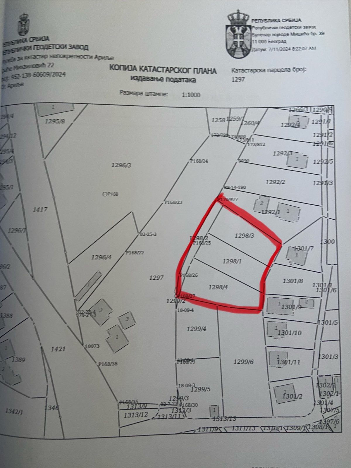 Three plots for sale in Arilje, ideal for building family houses. Placevi is located about 10 minutes' walk from the city center, near the main road Arilje-Ivanjica (Trebezine, Raskova Bara). It is a building plot, cadastral plot number: 1298/1 - 6.70 ares, 1298/3 - 6.89 ares, 1298/4 - 8.03 ares. Access to the plots is possible from Svetolik Šendekovića Street. According to the urban plan, in the future, the construction of a street leading to the squares is planned. It is also possible to purchase plots as a whole of 24.18 ares, where in that case cadastral plot 1298/2 of 2.56 ares is added to the mentioned three plots. The price is 5,000 euros per are. If all plots are bought, agreement on the price. For all information, call +38160/7527127. Nikola Simovic