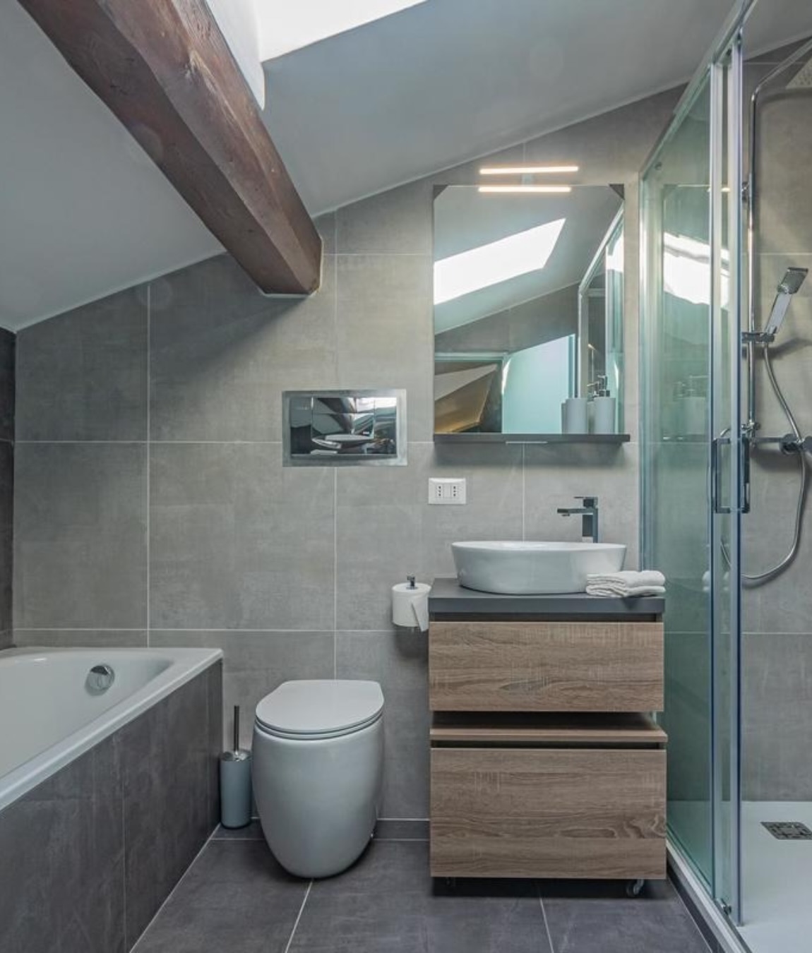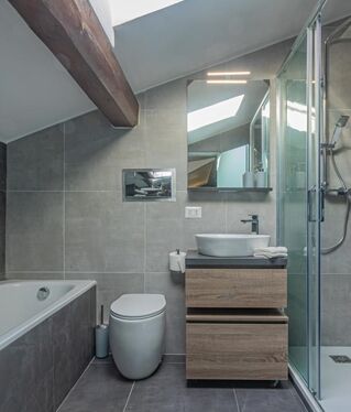 Studio apartment in a small residential complex right by the promenade in Menaggio, recently renovated with a bright open living area, modern kitchen, and a windowed bathroom. Large windows frame views over Lake Como and the surrounding mountains. Perfect for enjoying lakeside living or as a holiday retreat within walking distance of amenities.