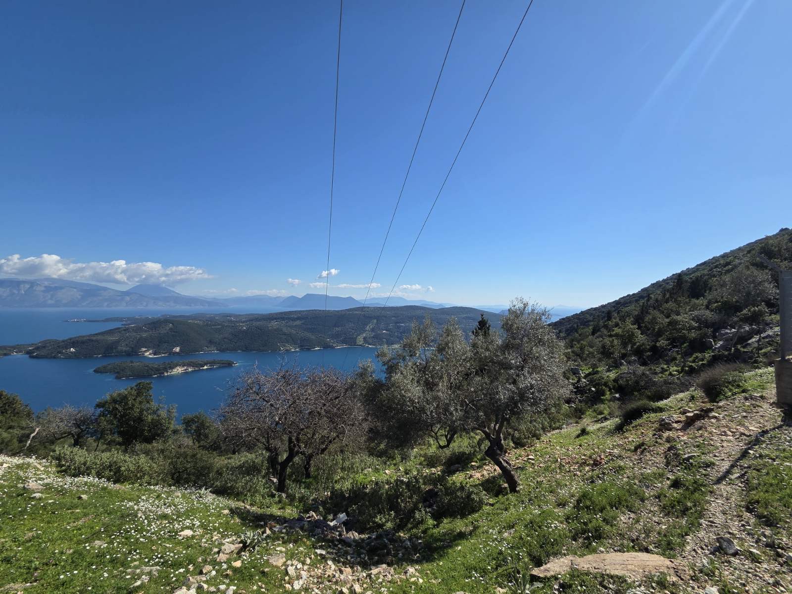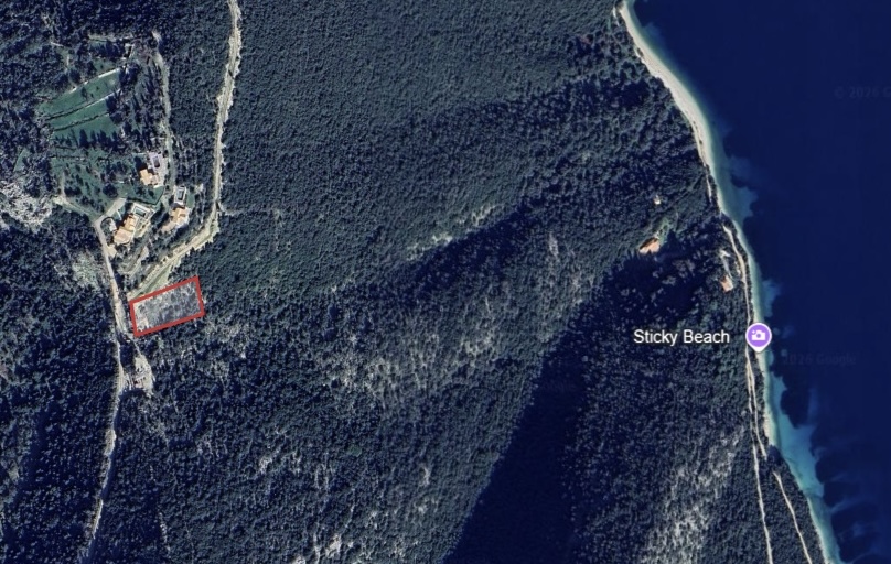 For sale: a 5,000 sqm land plot in Poros, Lefkada, with panoramic and unobstructed views towards Meganisi, Kalamos, Skorpios, Kastos, and Aitoloakarnania.