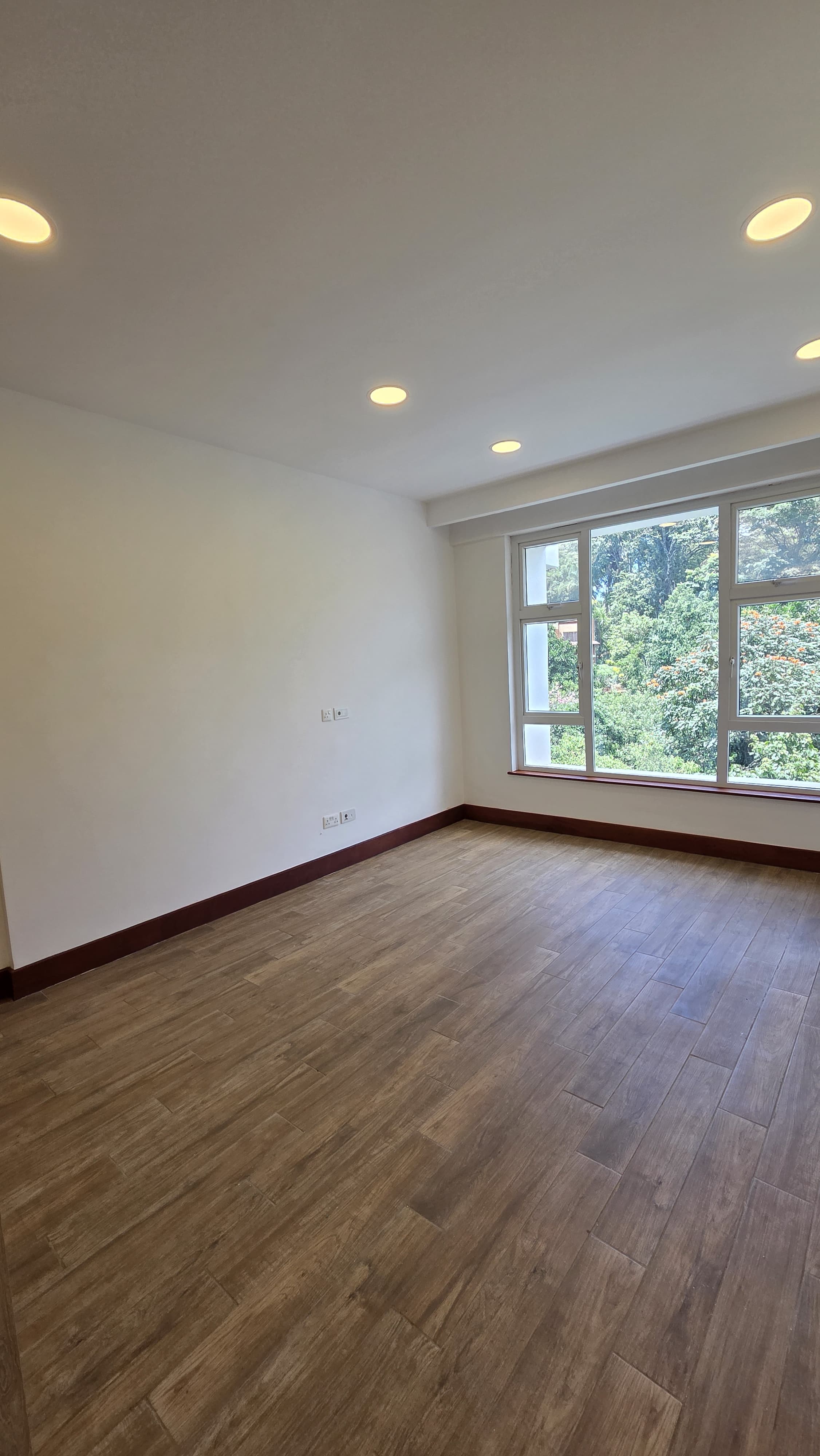 Natural light floods through expansive windows, offering serene views of Karura Forest. The apartment features a cloakroom, dedicated laundry utility area, solar water heating, and reliable borehole and city council water supply, complemented by a full backup generator.