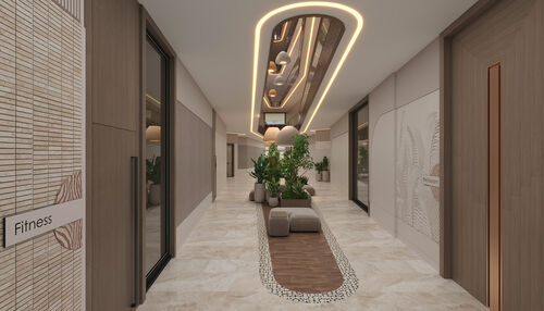 Each apartment is equipped with PVC windows, fully fitted kitchen cabinets, porcelain granite ceramic flooring, turnkey bathroom and toilet installations, modern bathroom cabinets, and high-quality interior and exterior doors.