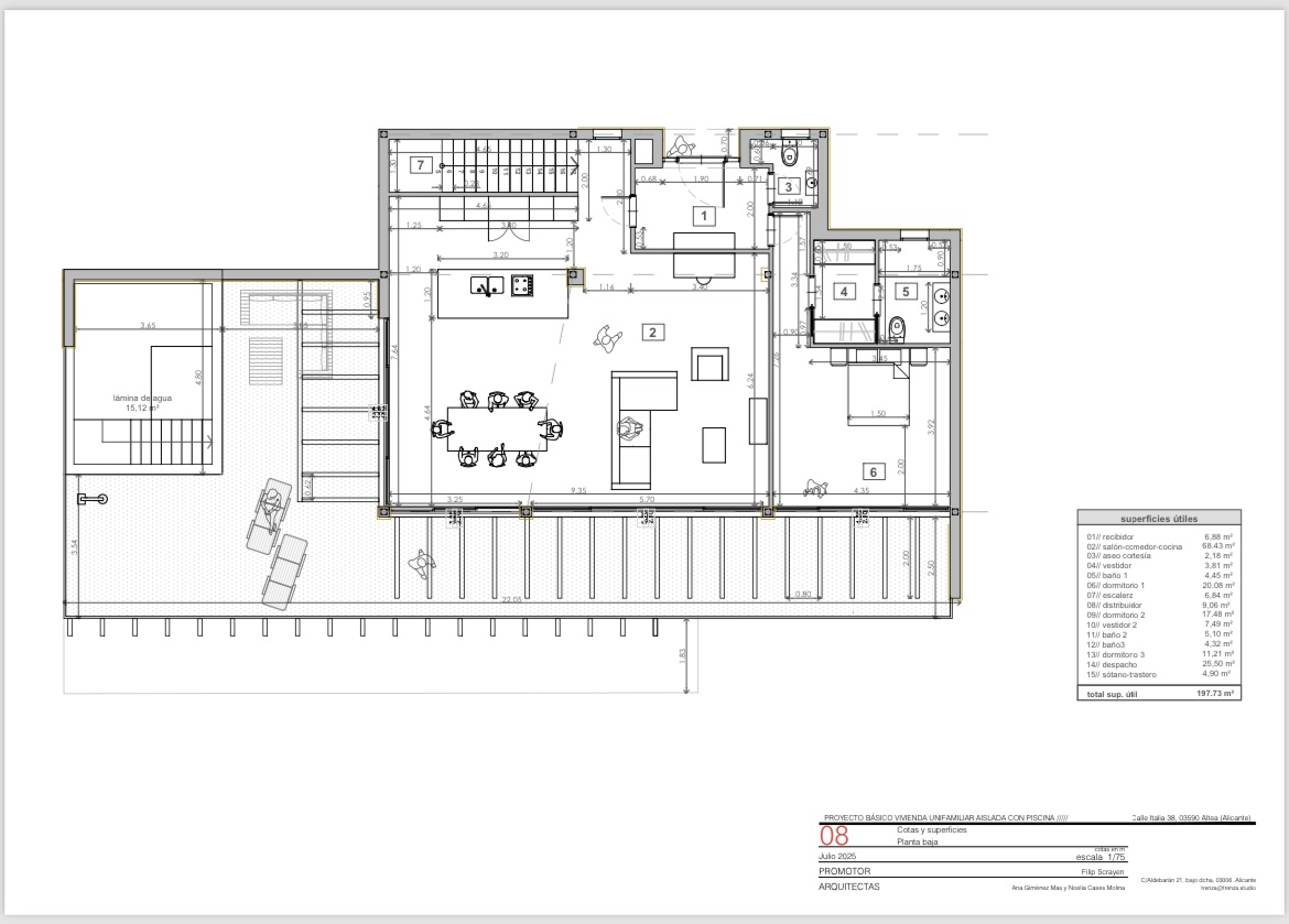 10 years warranty, new system of building with steel framing + artisanal finish with real stone. High quality windows from floor to ceiling that can be opened to extend the rooms to the outside of the villa. Big terrace of 25m total length with large porches to create maximum shadow for the warm summer sun.