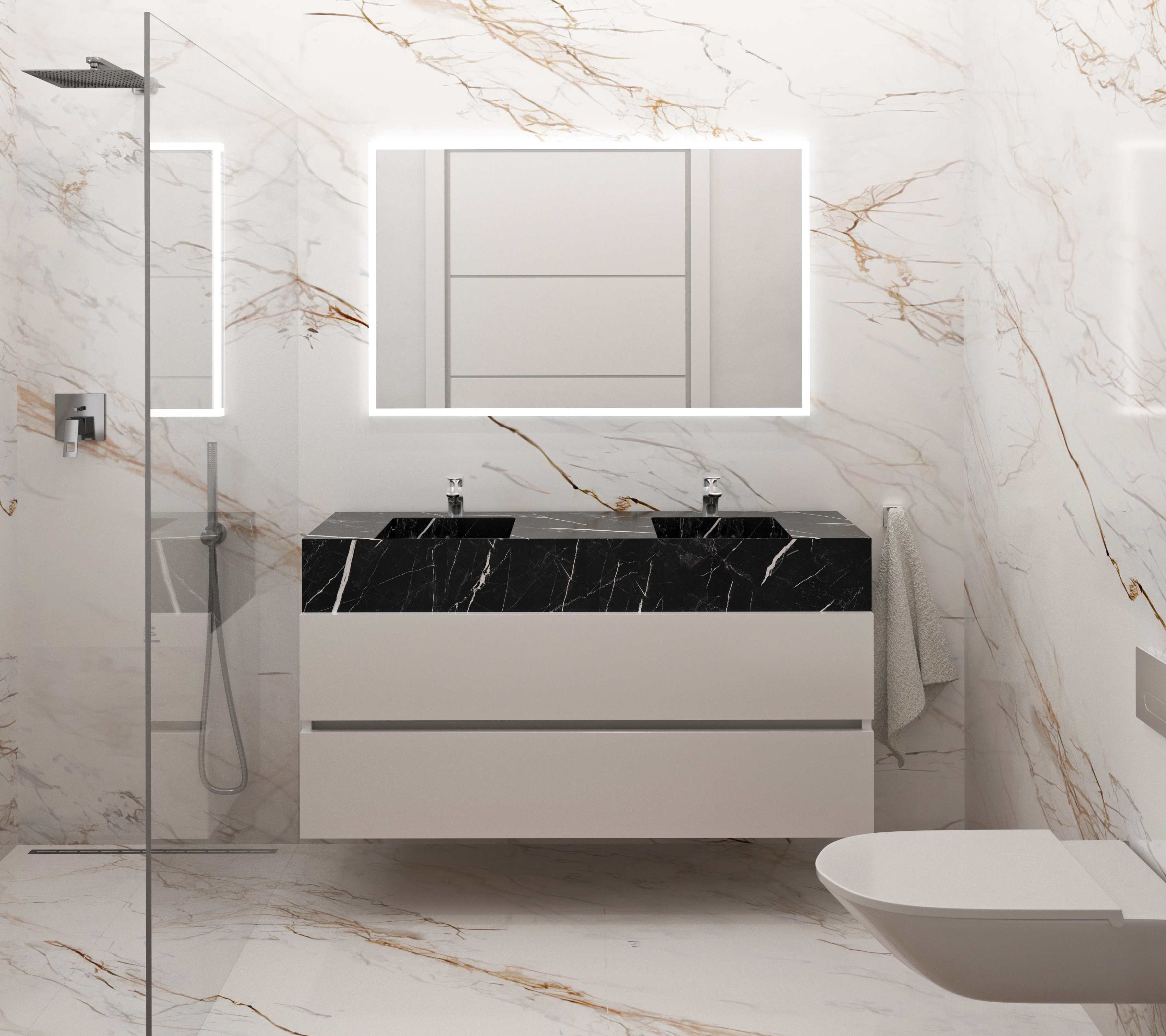 -large 70m² open living room with access to one of the master bedrooms / bathrooms on the same floor as well as the street / parking space for 2 cars and a motorcycle. No need to access stairwells for people who want to live on one floor level and use the second lower floor for invites only.