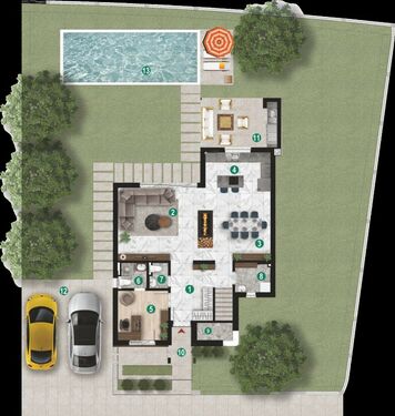 The villas are sold unfurnished, but interior decoration and furnishings can be arranged upon request.