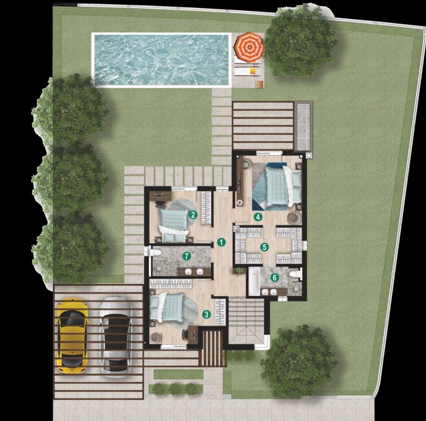 · Total built-up area of ​​each villa: 200 m²
