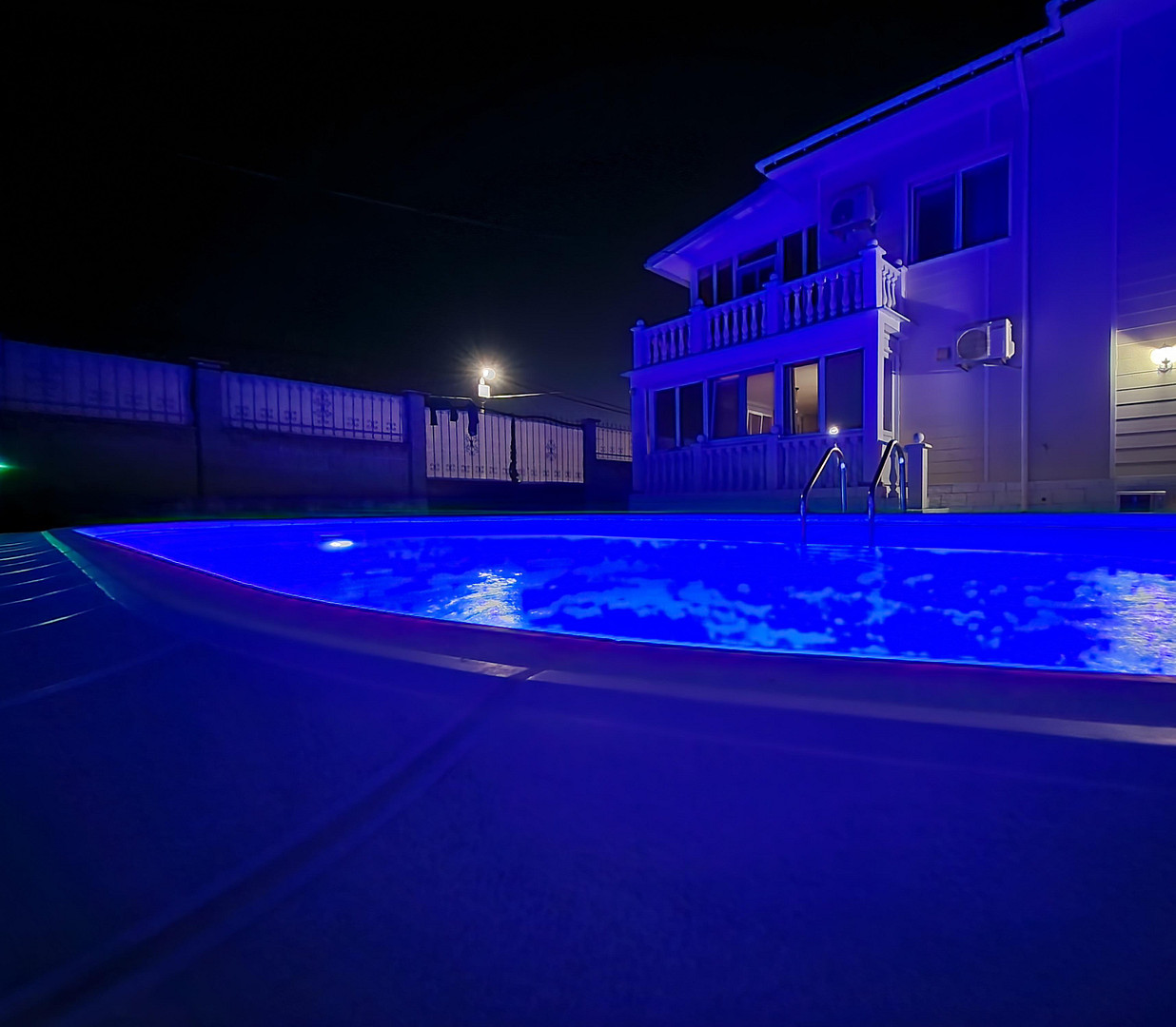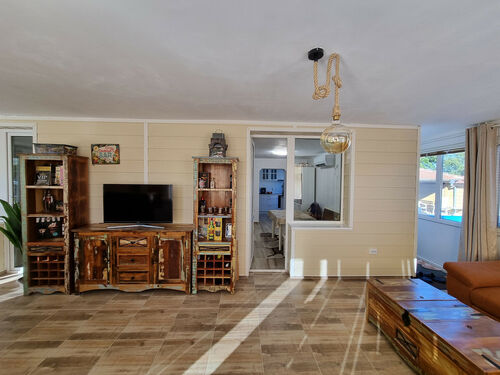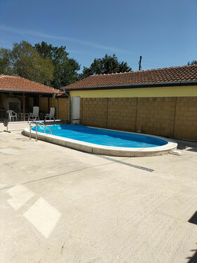 Pool with salt electrolysis and heat pump, enabling comfortable use and extending the summer season.