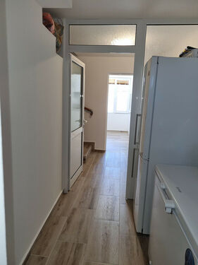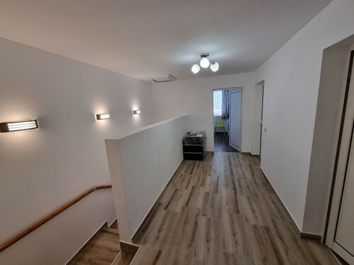 Large hallway and bathroom with toilet – porcelain stoneware tiles.