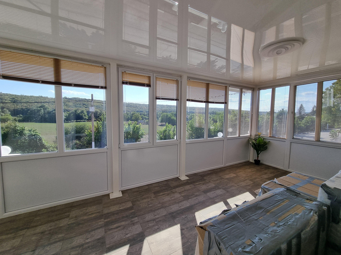 All exterior windows fitted with horizontal blinds.
