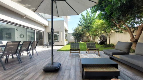 Dreaming of living in the prestigious Irus community and starting your mornings like this? I’m excited to present a modern and modular luxury single-family home with exceptional architectural design, featuring a bright living room facing the outdoors, a fully equipped designer kitchen with an island, a dining area overlooking the lawn, spacious bedrooms and suite-style rooms, luxurious bathrooms, a modular laundry room, a master suite with a private balcony and pastoral views, a home-office, a basement designed as an independent unit plus an additional unit/studio, underfloor heating, double parking, optional swimming pool, solar system and elevator – all spread over 366 sqm built on a 507 sqm plot, in a quiet location open to wide green surroundings. We would be delighted to meet you for a private tour: Rave Roda & Naor Roda at your service 052-3004477 | 052-3339755