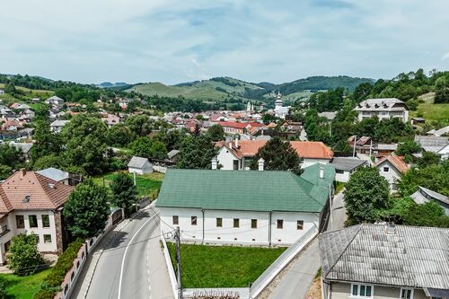 The property is located in the central area of Abrud city, Alba county, on Detunata street, no. 65 and is composed of four buildings with a total built area of 1,051 sqm and a total developed area of 1,689 sqm. The total usable area is 1,261 sqm and the related land has an area of 3,027 sqm, which increases privacy and the possibility of arranging the exterior space.