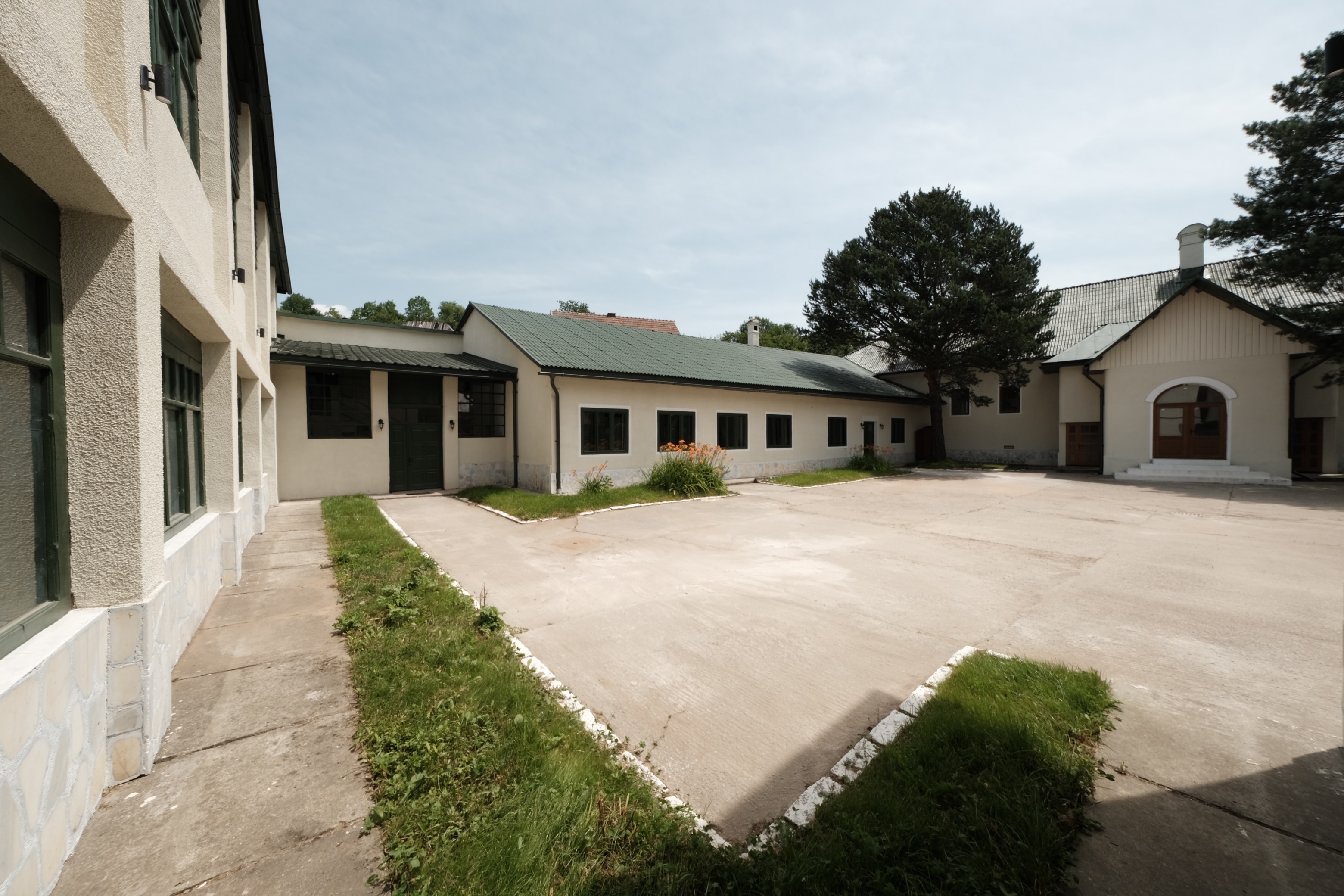 Building 1 (C1): has a built-up area on the ground of 517 sqm, a developed area of 871 sqm, and a usable area of 670 sqm. The height regime is GF+1 (Ground Floor + 1st Floor) and it is 90% renovated, respecting the initial architectural elements: casement windows, exterior decorative plaster elements, interior parquet.