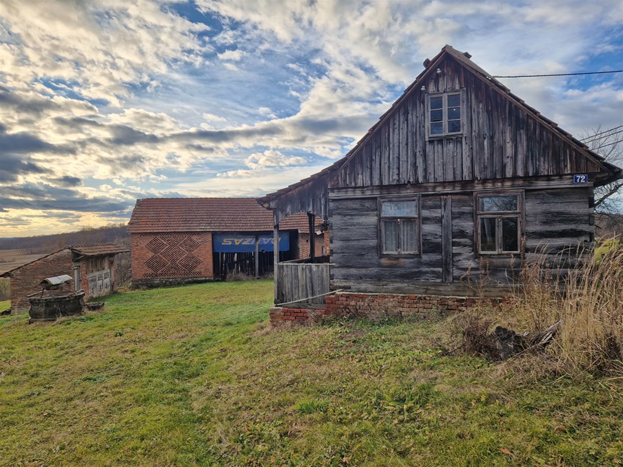 On the property there is a legalized and licensed wooden house with a basement (84m2), a legalized and licensed outbuilding consisting of a barn, gazebo, and storage (238m2) and a non-legalized detached farm building - a piggery/chicken house (17m2). One well of exceptional water quality is in the yard, and the other, which should be restored, is on the western part of the property near the main road on lot 1158.The property is located in the central part of the village of Milaševac across from the cooperative home along the main road.