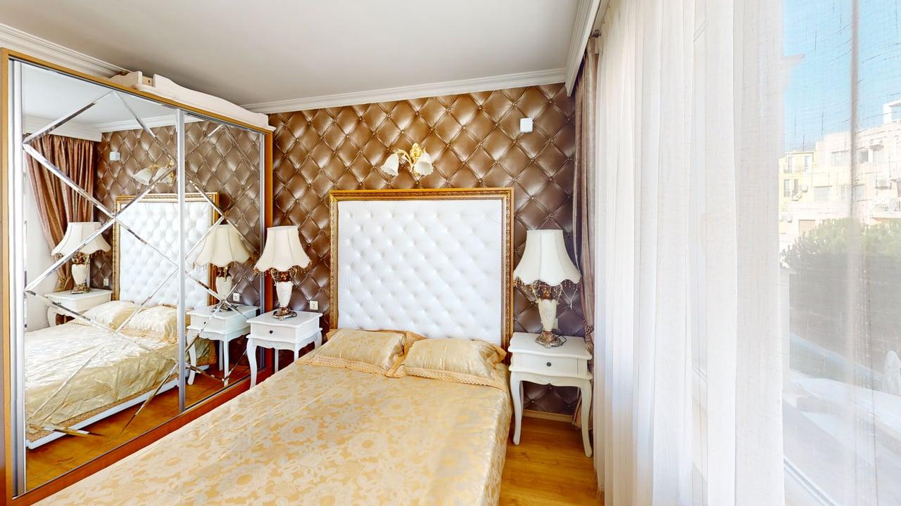 Furnished one-bedroom apartment, located on the 4th floor in Sweet Homes 3. The complex is located in the central part of the Sunny Beach, in a quiet area, close to the Aqua Patk, Supermarket MM, restaurants and about 500 m. from the beach /5-6 m. walk/. This beautiful complex offers – a Japanese garden, rock waterfall, parking, outdoor pool, SPA, playground, outdoor fitness equipment, fountains, etc.