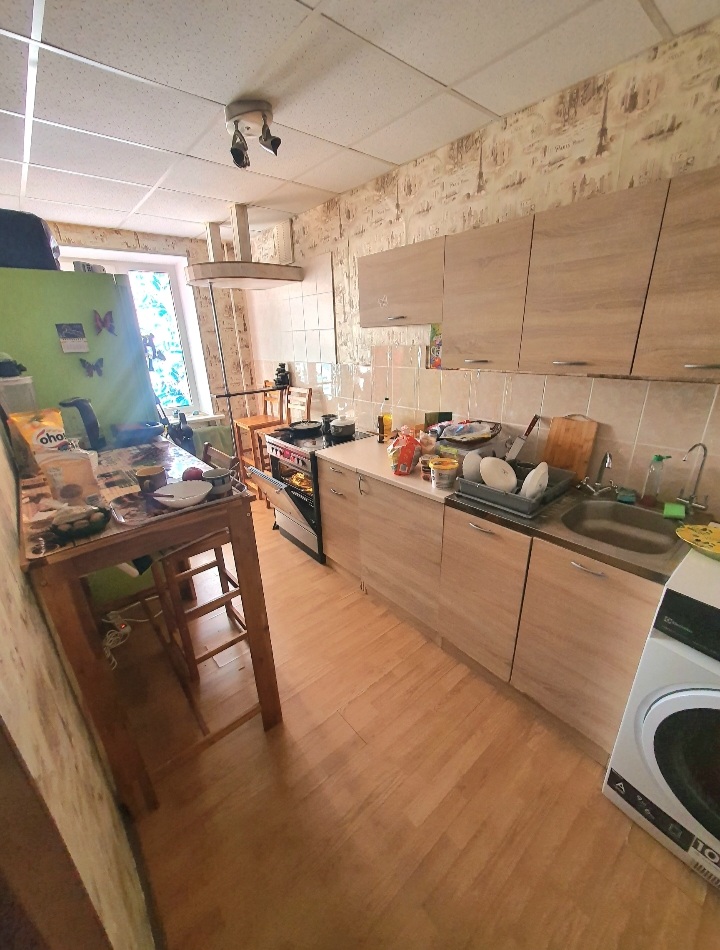 Beautiful Visaginas town, surrounded by forests and lakes (clean and not deep, warm as a tea in the summer for swimming), foxes, rabbits, mooses and deers. Recreational activities, horse riding, kayaks, fishing, skiing, hiking, berry and mushroom picking. Restaurants, public hospital and private medicine centers, Swedbank, vet, cinema, post office and so on, new bus station. A bus runs around town every half an hour, a bus stop is right beside the house, the train station 3 minutes by car, there is a direct train to the capital Vilnius, multiple times a day, from 5am to 7pm. An apartment house has 9 floors, this flat is on the 8th floor and is very warm in the winter, has a balcony, separate kitchen and bathroom, car space (visible down through the window). People here speak Lithuanian and Russian, the youth speak English, we also have some Indian people living here. The town has about 18 000 inhabitants, in the evening is very charming and almost empty, very safe, you can go anywhere in the middle of the night alone. People are friendly, respectful, and very helpful. Kindergarten by the other side of the apartment's house, which is located in the city center, Lidl is 3-minute walk. Multiple shops (up to 11 food stores including XXL sized, which you can see on google maps. The bills are low, only 5-10eu a month for electricity, 15-25 for water, central heating in winter depends on the weather, can be 15-40eu per month, free wifi 24/7 in the square where is Lidl.