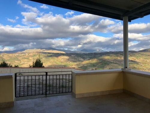 Must see Sicilian Villa perched on a hill with 360 degree unspoiled views and only a 25 minute drive to long pristine white sand beaches, with excellent affordable restaurants and cafes. In the southernmost of the Sicilian provinces, with everything you could want from nature and cultural experiences at your fingertips. The house has been completely renovated in 2018 and is ready to move into fully furnished in contemporary Scandinavian style. Included is also the original builder’s rustic and elegant “baking table” which had been a centerpiece in Cianciana’s fine bakery for generations. The 60 sqm are well distributed, and include kitchen / dining room, bedroom, shower, separate toilet. The covered terrace of 60 square meters is prepared for the installation of two - three additional rooms. The quality Scandinavian kitchen includes: Granite counter top. Large gas stove, extractor hood. Dishwasher. Refrigerator / freezer, Washer and Dryer. Brand new UHD 4K Samsung TV and two recently installed heater/AC units. On the ground there is a metal shed of 15 square meters and a stone house of 5 square meters which can be expanded and