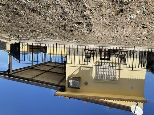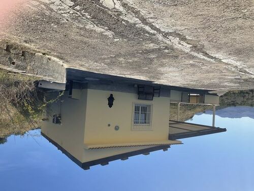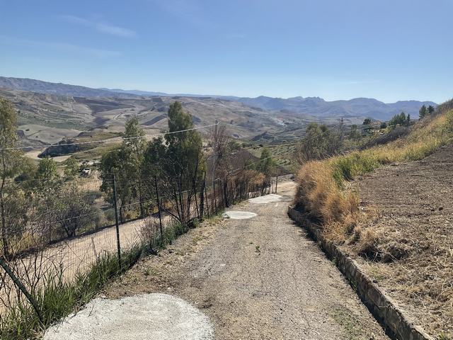 On a mountainside, with an unspoiled 360 degree indescribable view, this completely renovated charming villa of 60 sqm, with 60 sqm covered terrace, prepared for expansion of the living area and with a plot of almost 20,000 sqm, with olive and almond trees, is for sale in the fall of 2025. There is also a small stone house and a large metal garage on the plot. The villa consists of a bedroom with a brick shower, a toilet with Danish furniture, a Scandinavian kitchen, with granite countertops and porcelain sink, and a large living room. The kitchen is equipped with a fridge/freezer, dishwasher, dryer, washing machine and a huge gas stove and hood. The villa is delivered fully furnished and with outdoor furniture, bedding and towels, kitchenware, glass and porcelain, and cutlery. Much is new and or in good condition. A new large Samsung Flat Screen TV, satellite TV and two new Air co units. There is a 10,000 liter concrete water tank on the property, with water from the public supply network and a 5,000 liter concrete rainwater tank. The entire property is well maintained and plowed and harrowed in the fall, as well as cleared of weeds. The owner is a Danish building contractor and everything appears in a condition rarely seen in Italy. The access road was renovated with concrete this fall. A property with unimaginable possibilities at an extremely reasonable price. Price 125,000.- Euro