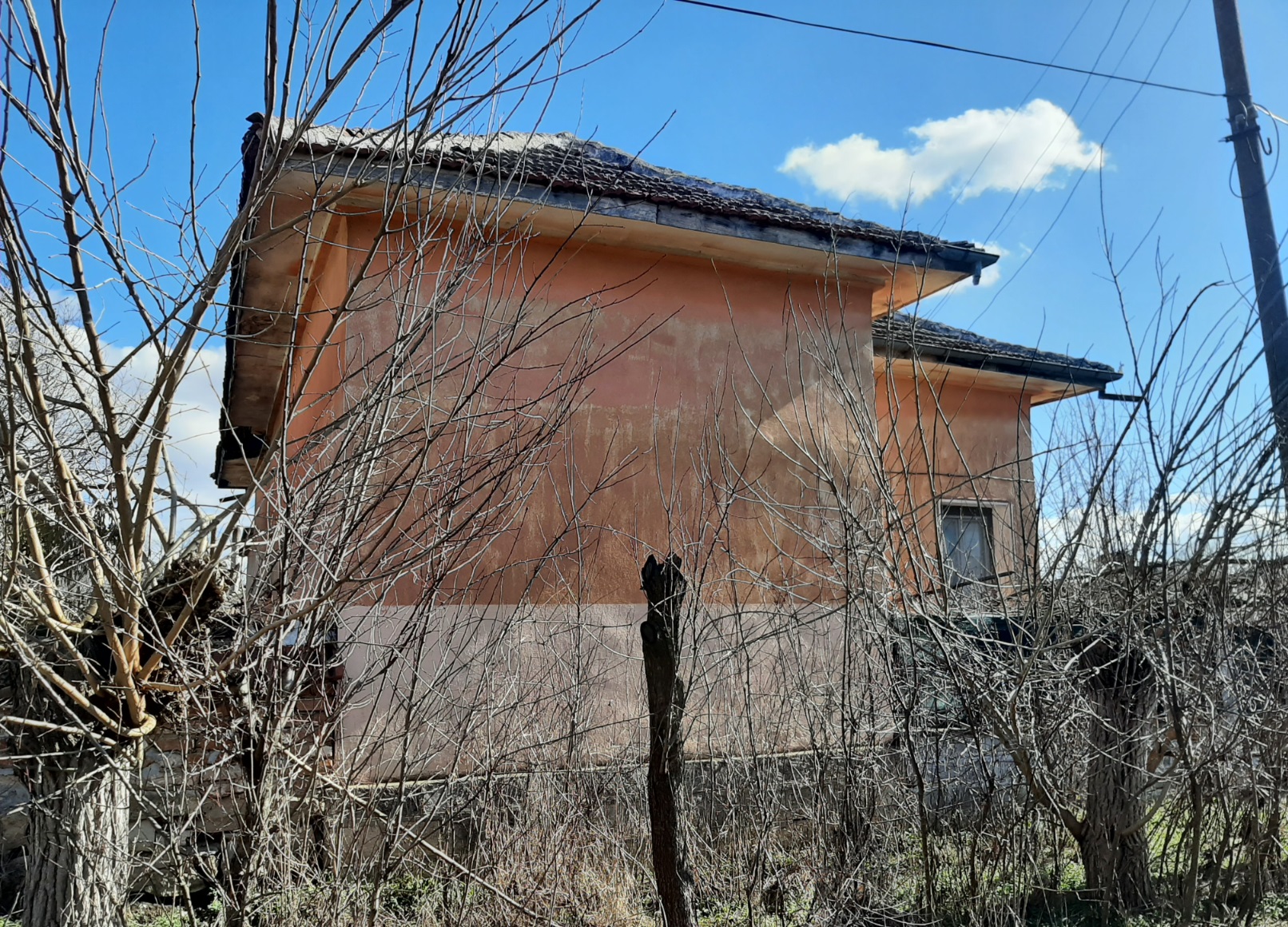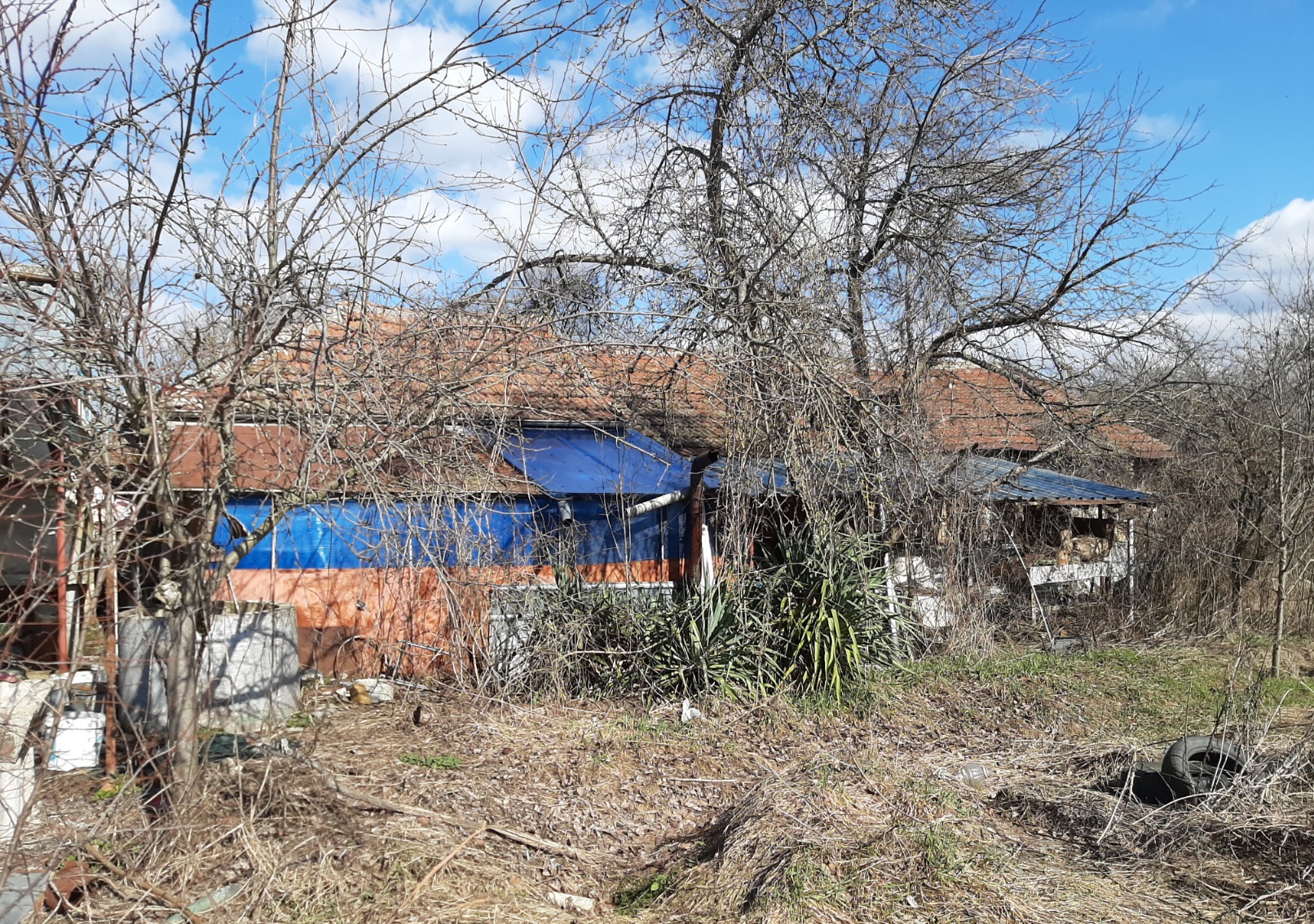 Country house with annex, garage and plot of land situated in a village near river 60 km northwest of Vratsa, Bulgaria. The property is located in a quiet spot within the limits of the village. The main building has one floor and consists of lobby, corridor, premise for kitchen, living room, two bedrooms, storage room and shower room with toilet. Bedrooms receive passive solar heating during the year and good light as they are facing south. The house has new plumbing, new cesspit and some job was done on the wiring. The roof was inspected and the bathroom in the main building is brand new. There are also new floors in the corridor and the kitchen inside the house. Wring was revised and updated. Next to the house is the annex which holds outdoor sitting area, shower room with toilet and living room with kitchenette. The property has main water supply as well as a private well which is conveniently located close to the house. There is also a garden tap not far away. Beyond the summer kitchen there are several sheds with light and electrical connections. They have been used for animal shedding and furniture storage, as well as workshops. The garden beside the house is fenced too. To the left of the property is a mechanics garage opening directly out to the street with secure steel doors, cupboards and shelving, a work channel cut into the floor and plenty of room for parking up to three cars beside the garage off street behind a wide double gate. Beyond it are several sheds for animal raising and storage. Garden plantings include herbs and fruit trees, with apples trees of different varieties for eating and cider production, sloe plums for gin, cherries for cherry liquors and red and white table and wine grapes planted. There are also some bee frames and equipment, with bees having been kept on the property in the past for honey and mead. There is a cask and bottles in the basement which is ideal for winemaking. The center of the village is about 10 minutes away by foot from the house. There one can find a grocery store, café-bar, the local post office, school, library, park and mayor`s office. There is a small river passing through the area and joining a bigger one about 3 km outside the settlement. There one can find plenty of nice spots for fishing, camping and hunting. Easy walking distance to a children’s park play area and the local kindergarten. Rural property with lots of potential at a good price ready for someone to come in and finish it.
