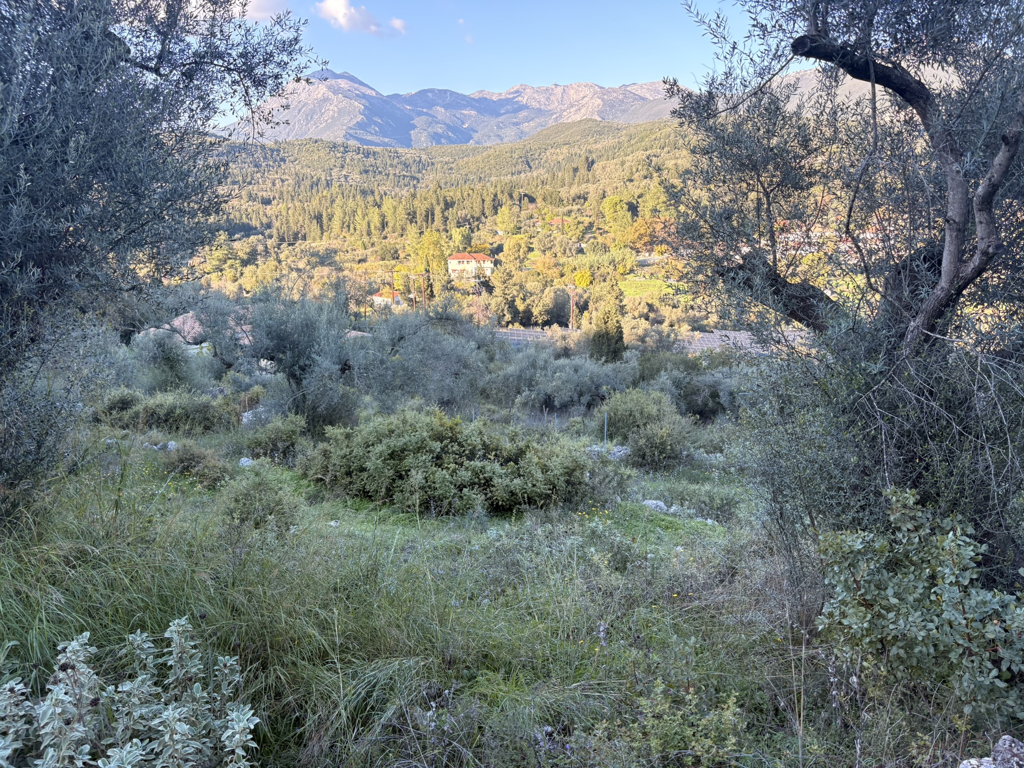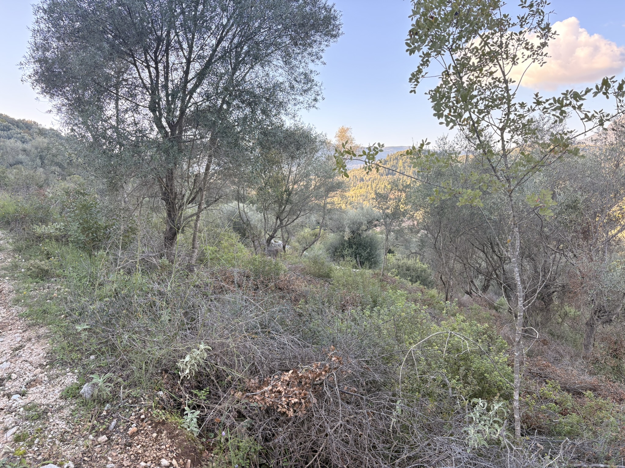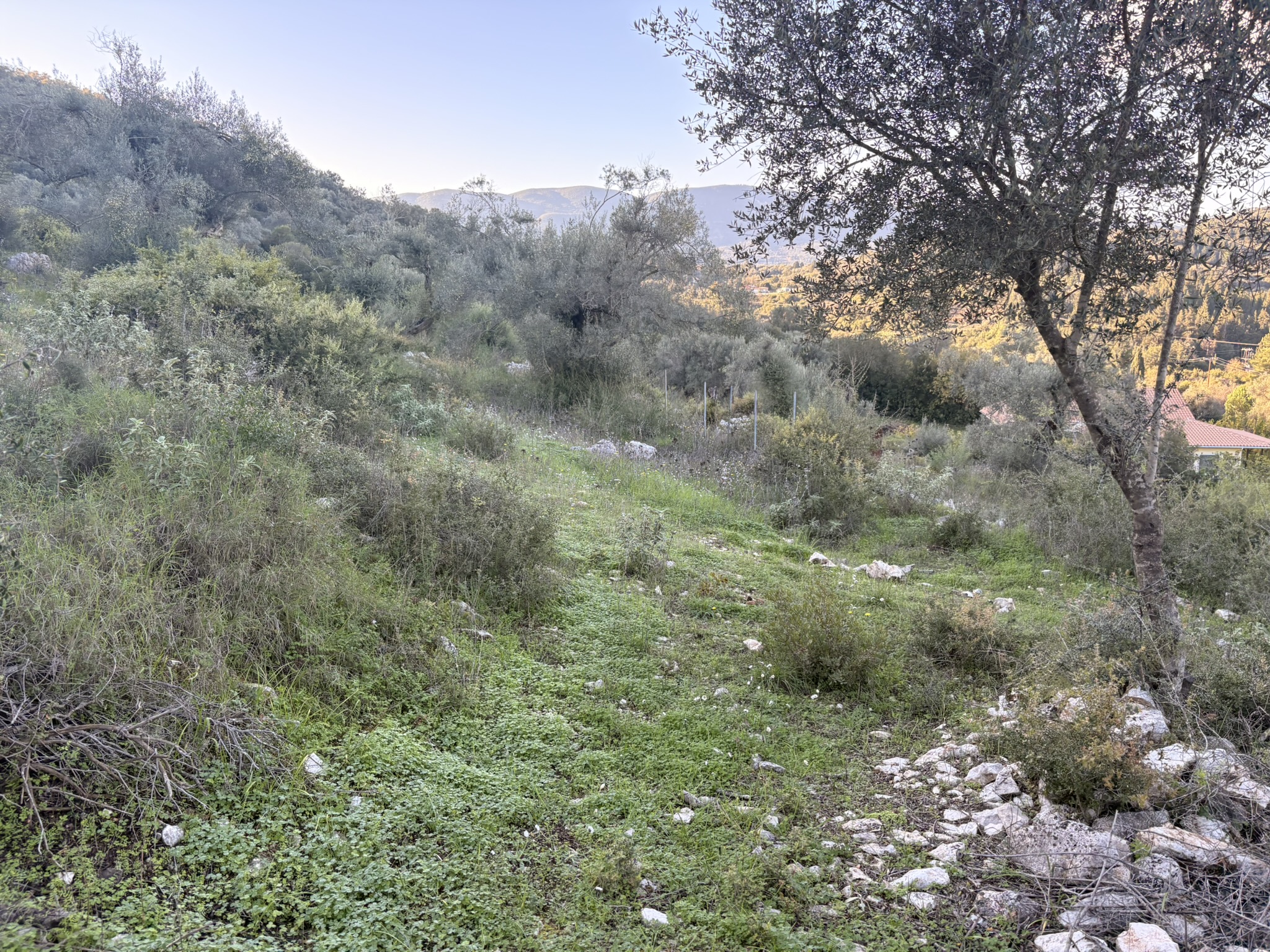 The plot is complete and buildable, with general land use and a maximum permitted building height of 7.5 meters. The sloping topography and the frontage of the land allow for the construction of one or more independent homes with unobstructed views of the surrounding mountains and olive groves. The southern slope ensures ample natural light throughout the day. The plot is accessible and located in a residential zone, close to electricity and water infrastructures.