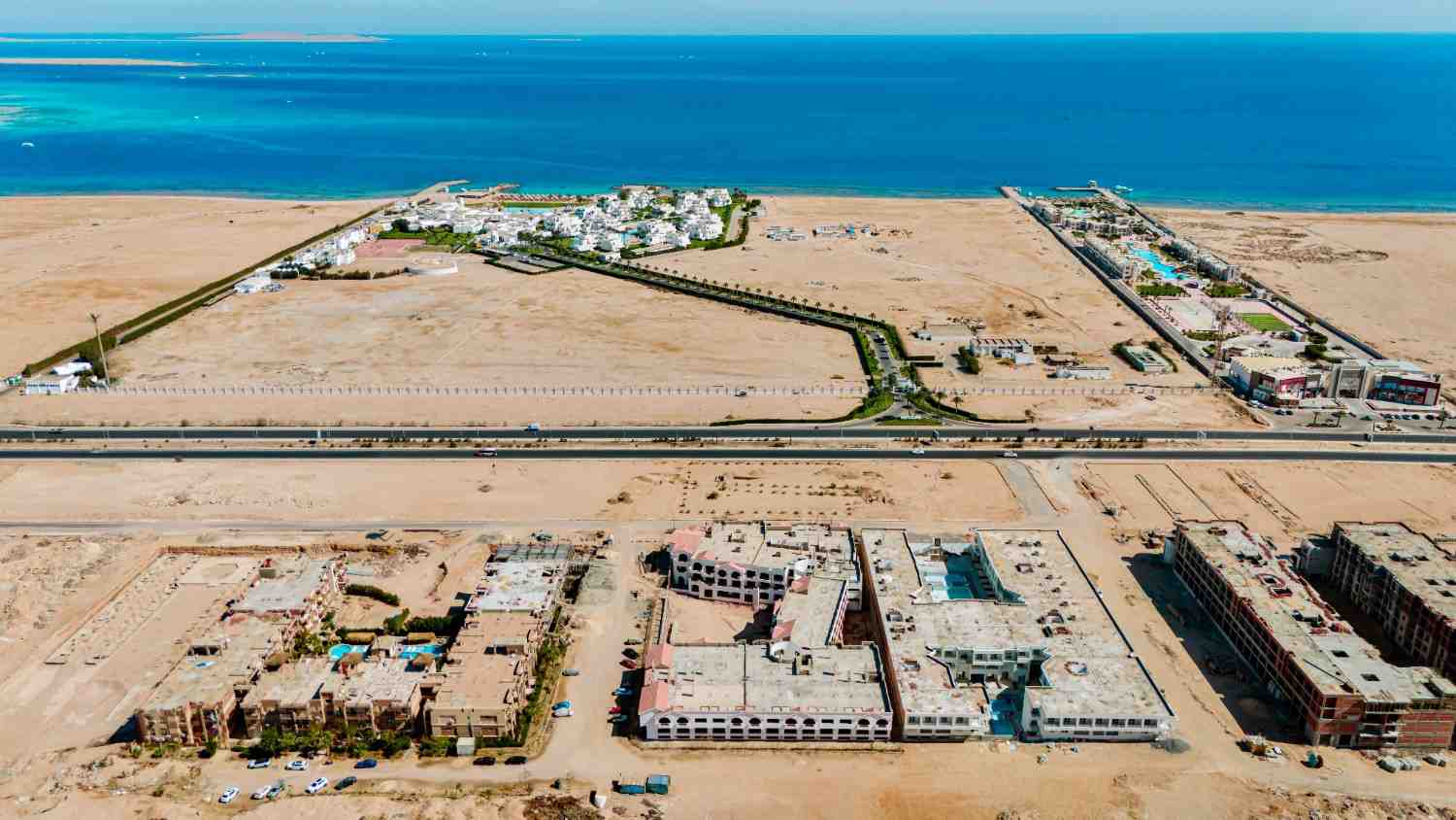 Aurora Palace is a modern residential resort located in the Magawish district of Hurghada, directly opposite the Mercure Hotel on Villages Road. The project benefits from a strategic location between Hurghada city center and Sahl Hasheesh, offering convenient access to beaches, tourist promenades, hotels, and Hurghada International Airport.