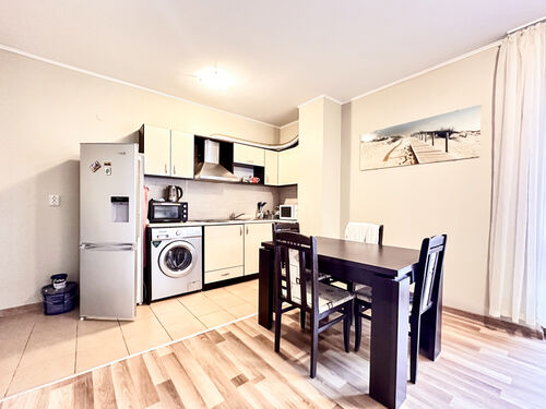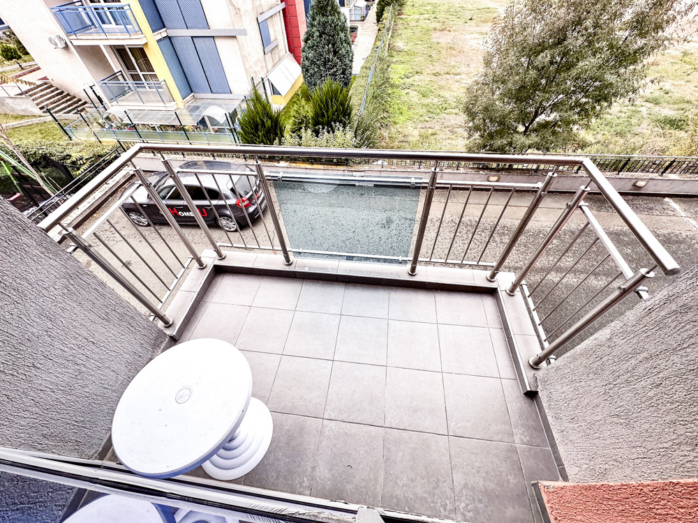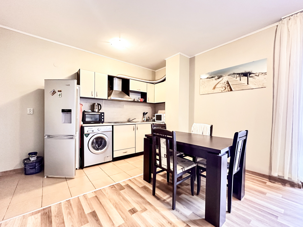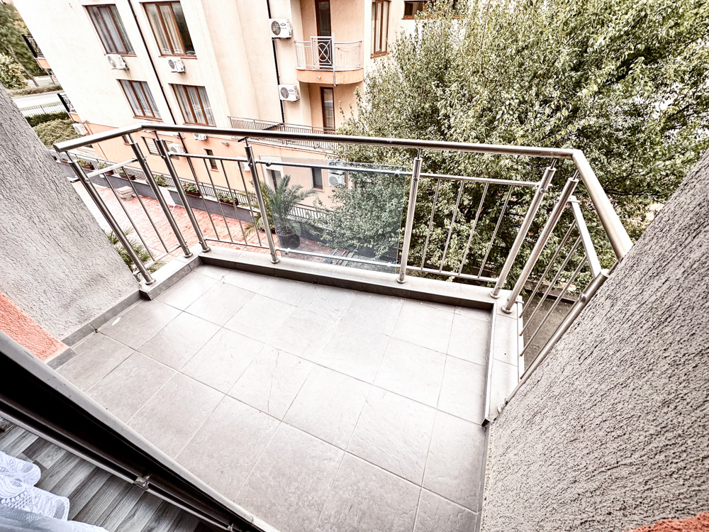 The complex is in a quiet, green area, yet within walking distance to shops, supermarkets, restaurants, cafés, and a mini aqua park. Old Town Nessebar is only 1 km away, with a nearby bus stop providing transport to Sunny Beach center, Nessebar, Sveti Vlas, and Elenite.
