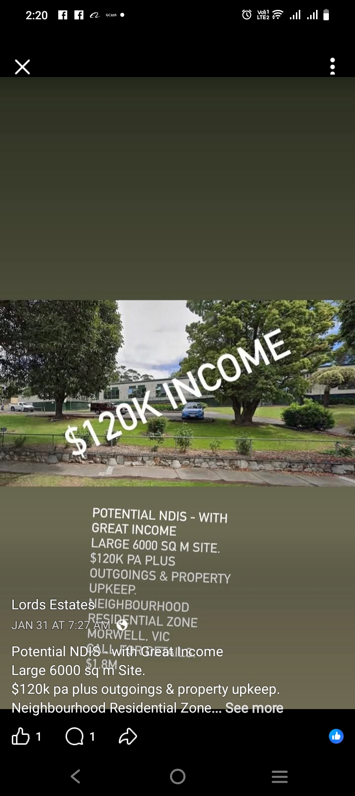 $120k pa plus outgoings & property upkeep.