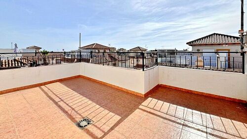 Semi-detached villa with private solarium and plot in a gated community with pool.