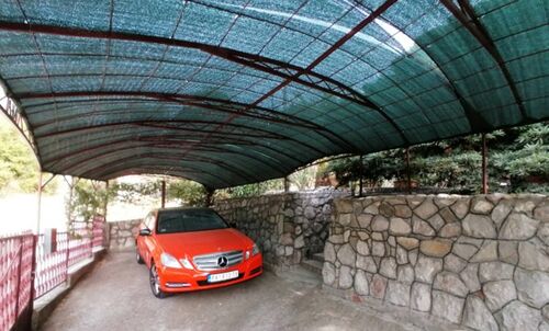 Covered parking in the yard for two cars.