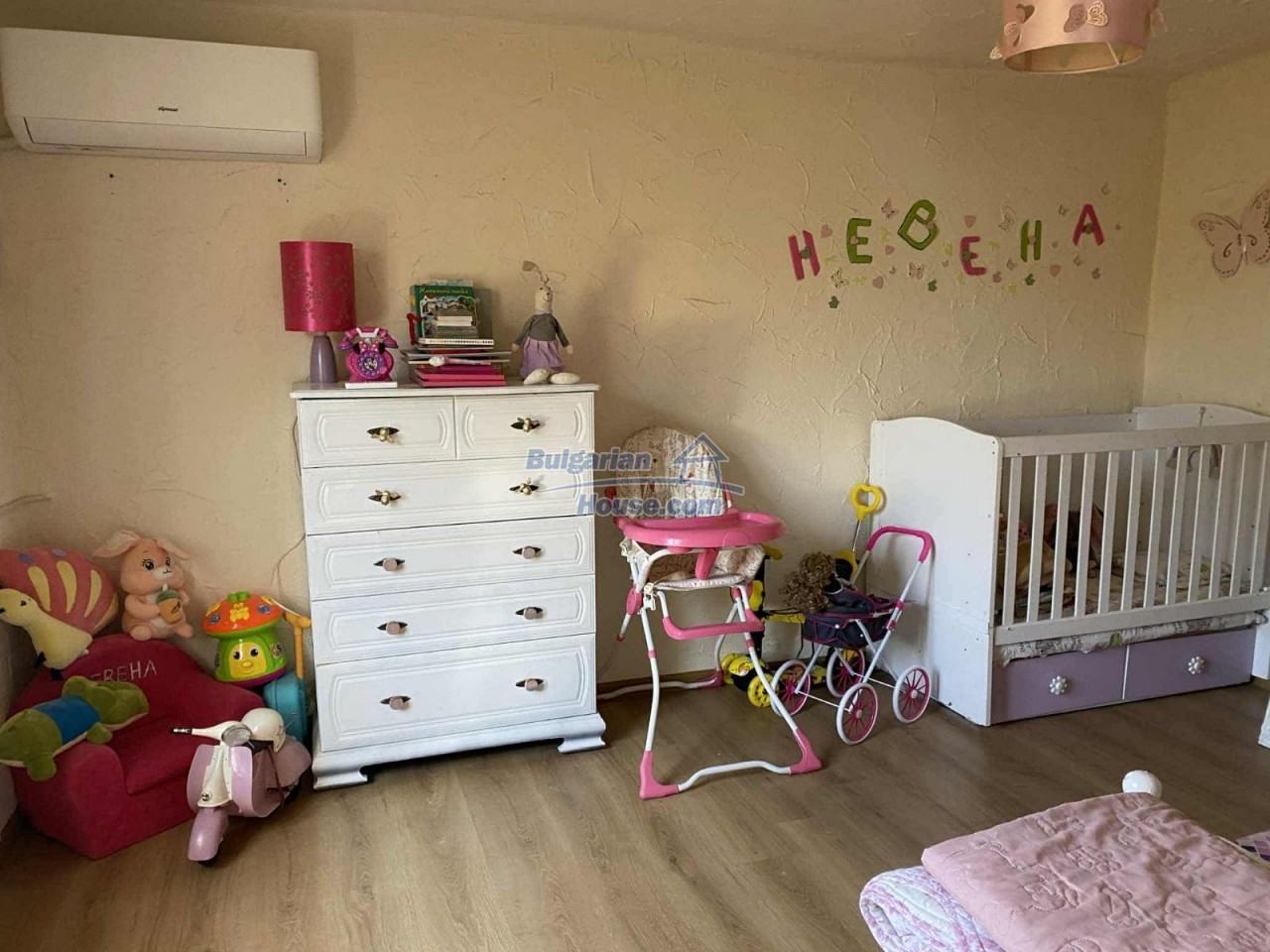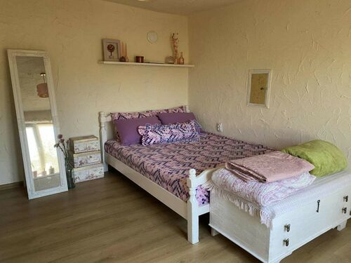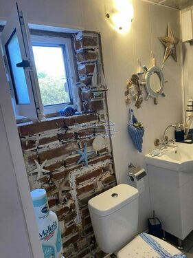 The single-story house has a total living area of 100 sq.m. and comprises a cozy living room with a kitchenette, three bedrooms, a bathroom with toilet, and a basement/storage room. The home has been fully renovated and is move-in ready. It features new PVC window frames, updated electrical wiring and plumbing, and a central wood-fired heating system with radiators in every room. Additionally, each room is equipped with air conditioning for year-round comfort.