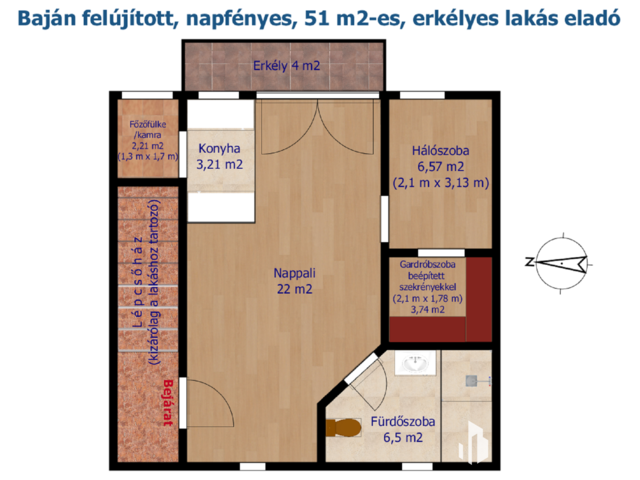 RENOVATED, SUNNY, 51 M2 BALCONY APARTMENT FOR SALE IN BAJA - Photo Gallery