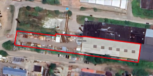 The facility includes built-in installations for electricity, plumbing, and compressed air systems. An independent transformer station provides maximum power capacity of 250 kW. The property features 3 acres of asphalted yard parking area.