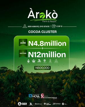 This isn’t ordinary real estate. At Àrokò, every acre is profit + paradise. From cocoa, cashew, palm trees to ranches.