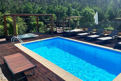 “Casa do Fulão”, a rustic house with 3 suites, completely renovated and expanded, ground floor and 1st floor, with an equipped kitchen, air conditioning, annex with a recreation room, terrace, veranda, garden with a litlle lagoon, sauna and various outdoor leisure spaces, swimming pool, jacuzzi, barbecue area with pergola, parking space, and irrigation well. (Ref: 2979)