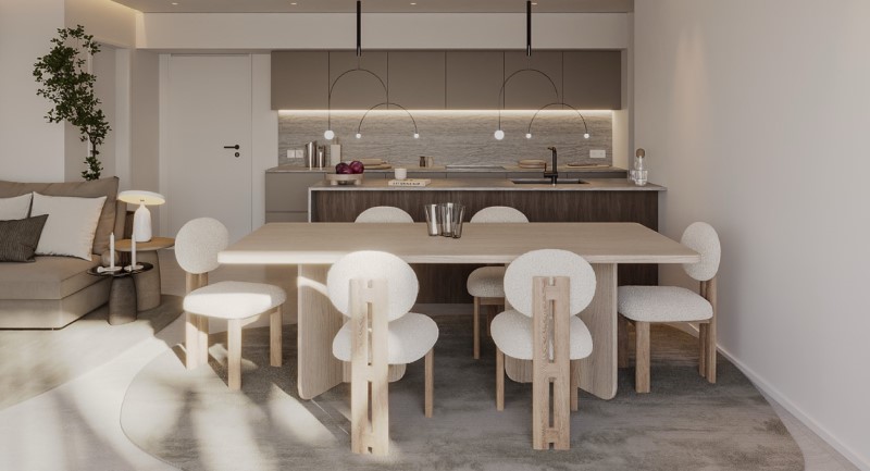 The interiors have been designed to reflect the philosophy of contemporary everyday living, with carefully selected materials, elegant details and a balanced combination of light, colors and textures, creating spaces that feel vibrant, calm and welcoming.
