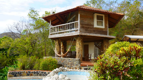 With pool and jacuzzi. But best of all is the impressive scenery it offers.