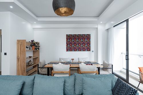 - Bright living and dining area with balcony views