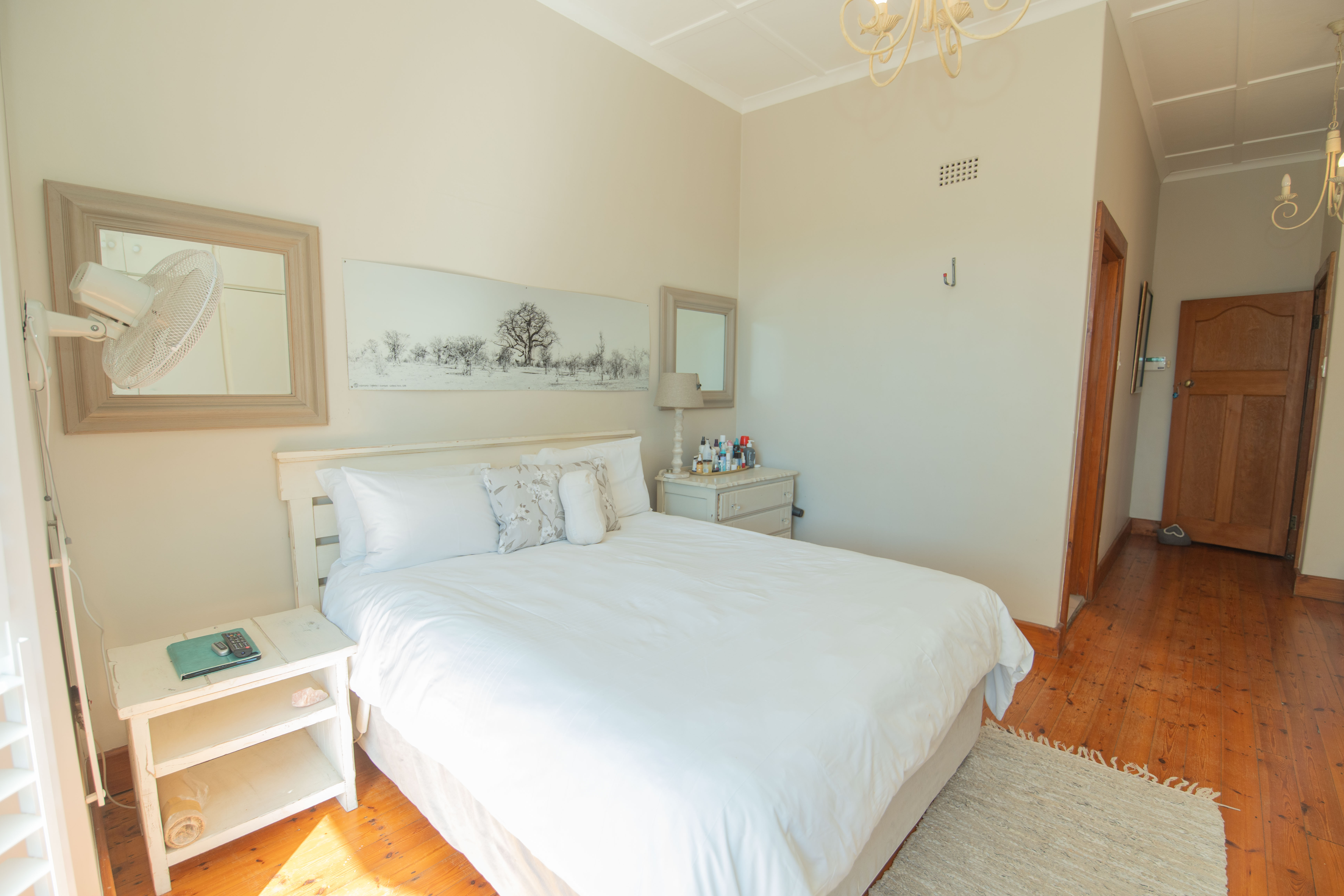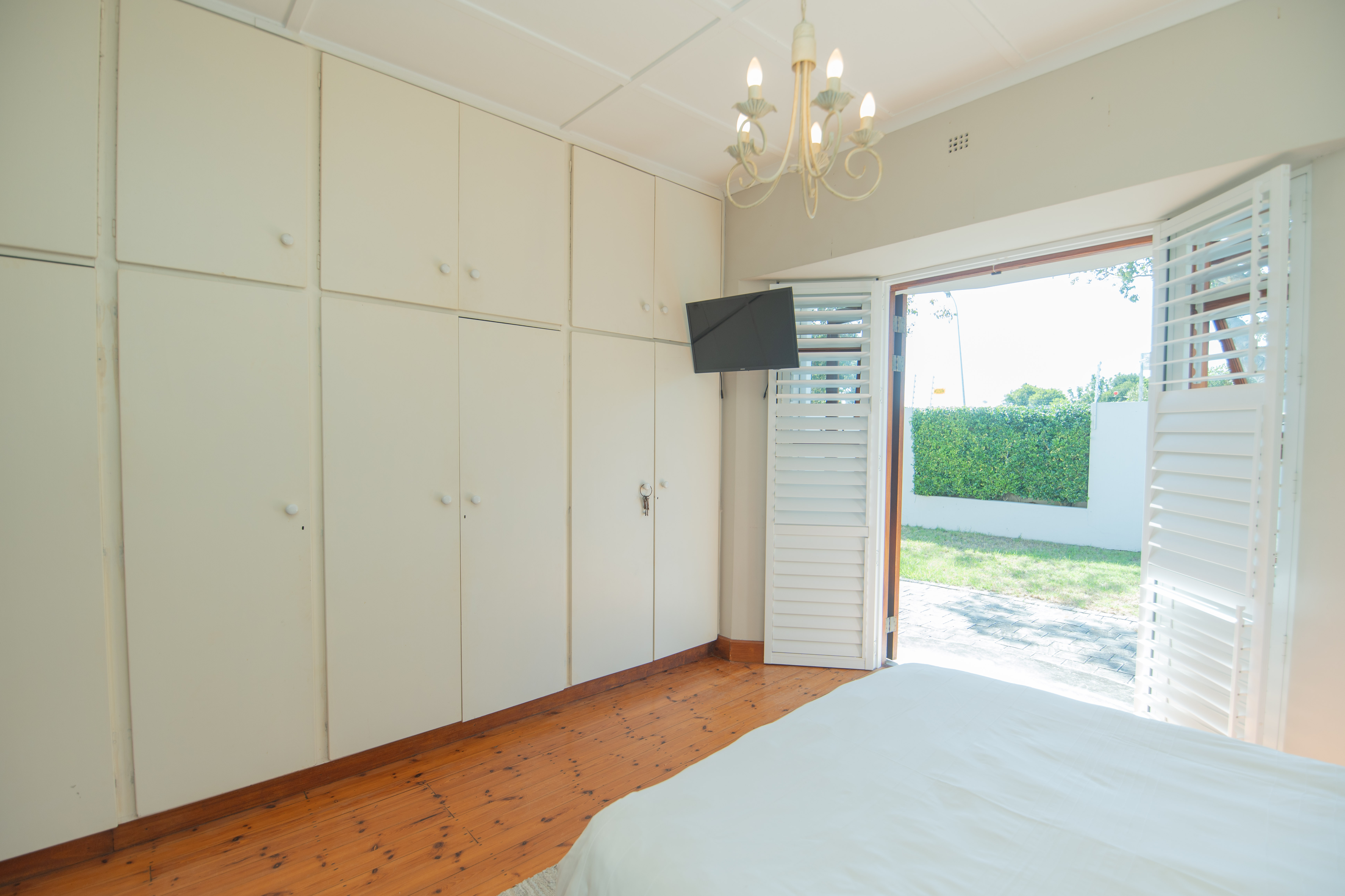 - Master bedroom with American shutters, wall to wall cupboards, en-suite full modern bathroom.
