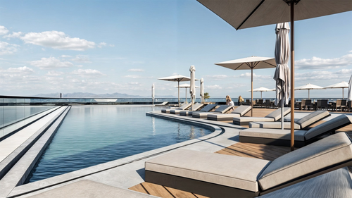 Two panoramic rooftop swimming pools with sea views