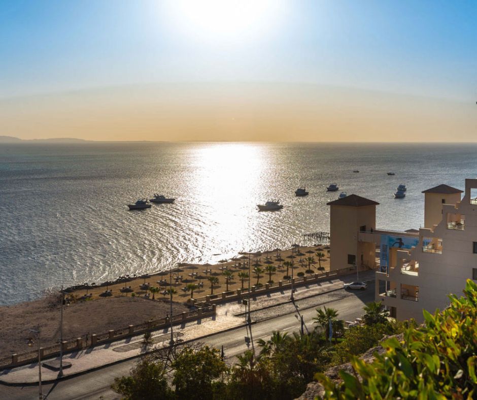 On clear days, the view extends to Sahl Hasheesh and the turquoise waters of the Red Sea, overlooking its unique and colorful shoreline.