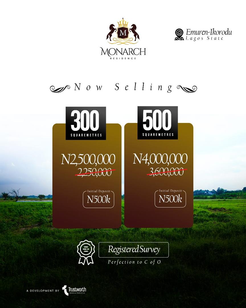 Trustworth Homes and Properties presents to you Monarch Residence, Strategically located in the serene and fast-developing area of Emuren, Ikorodu for homeowners and investors alike.
