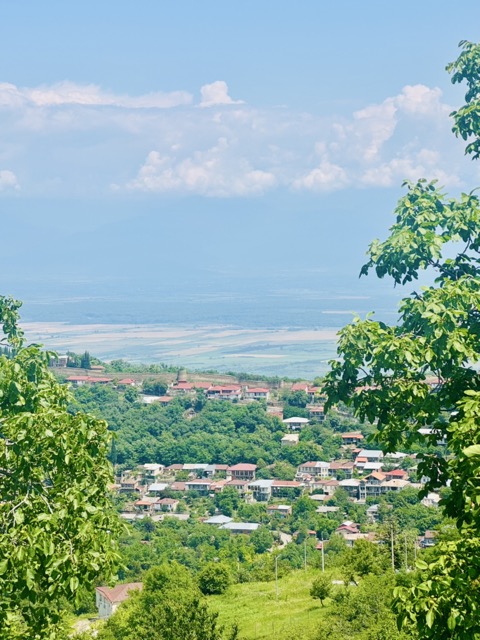 🌄 Breathtaking views of Sighnaghi, the Alazani Valley, and the snowy Caucasus Mountains.