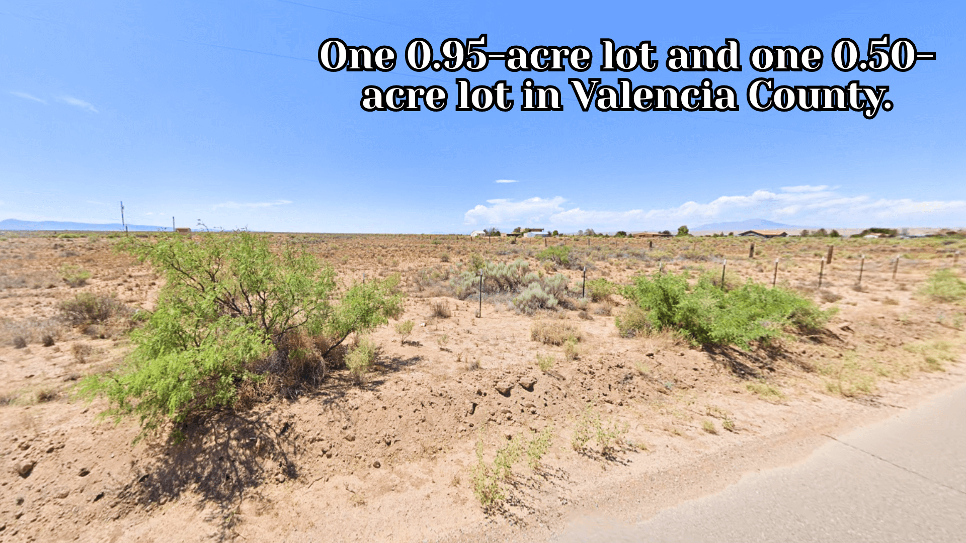 One 0.95-acre lot and one 0.50-acre lot in Valencia County.