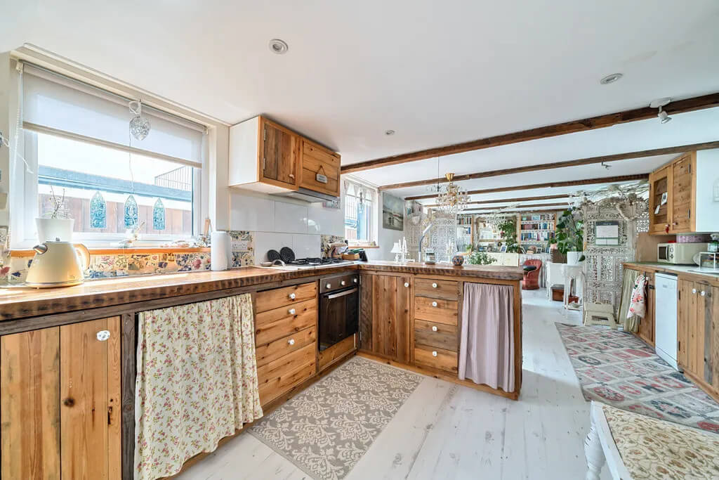 Upon entering Krysta, there is an immediate sense of space and comfort, with natural light flowing throughout the vessel. The large open-plan kitchen and reception area forms the heart of the home and offers a charming country-cottage feel. This attractive space includes a well-sized fitted kitchen with ample storage and work surfaces, together with dedicated dining and sitting areas.