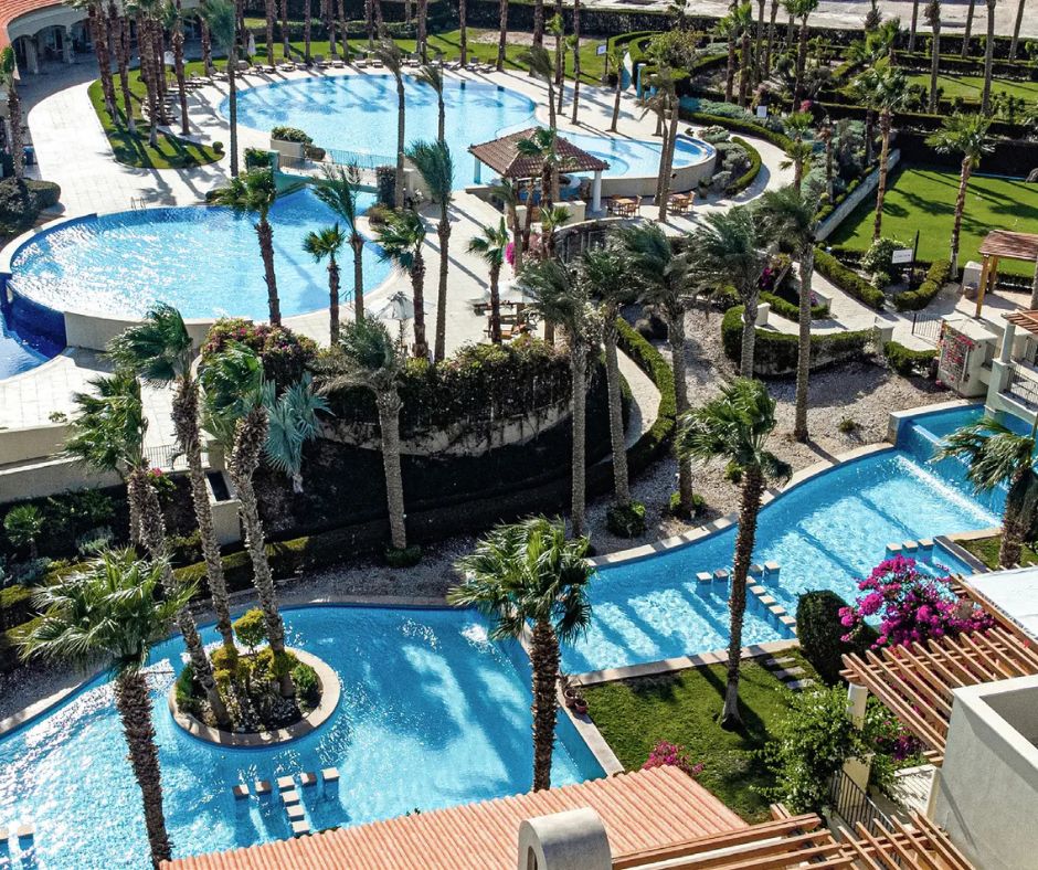 Multiple swimming pools are distributed throughout the project, enhancing the resort-style living experience and offering spaces to relax and unwind.